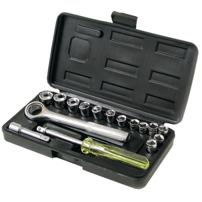 17 Piece, 1/4 Inch Drive Socket Set \n \nIncludes plastic carrying case