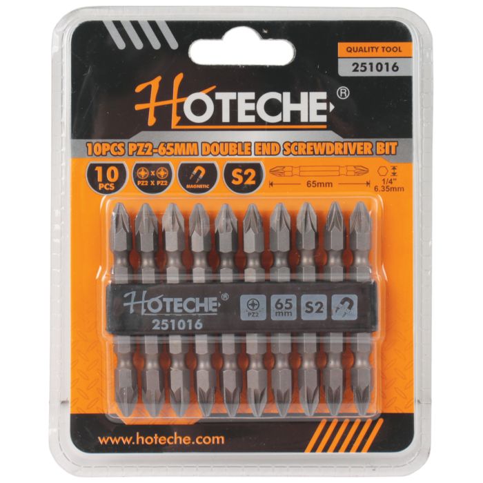 Hoteche 10 piece magnetic PZ2-65 millimetre double end screwdriver bit - S2