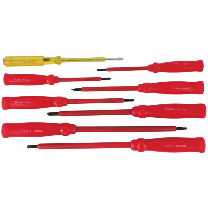 Heavy duty 8 piece insulated screwdriver set. Ideal for mechanics, engineers, electricians.