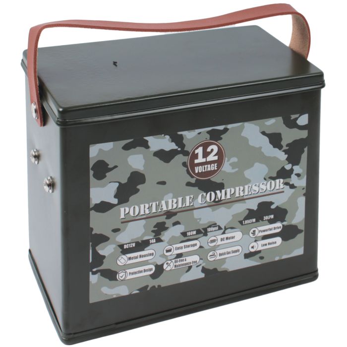 \nUpgrade your air supply solutions with the Portable 12 Volt Compressor in Ammo Case. This versatile compressor is designed for anyone who values convenience, power, and durability. Whether you're heading out for a weekend camping trip, tackling roadside emergencies, or simply need to inflate sports equipment, this compressor is ready to rise to the challenge. Enjoy peace of mind with this reliable tool at your disposal and never let flat tires or deflated gear ruin your plans again!