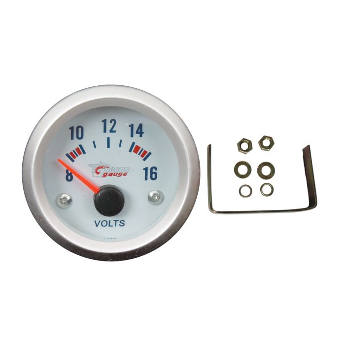 Silver and white Dragon Gauge 52 millimetre voltage gauge