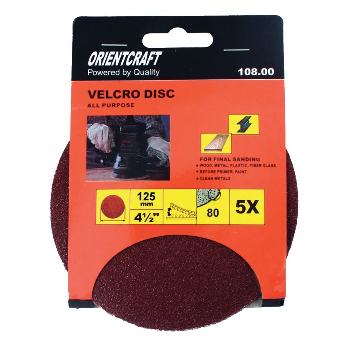 125 millimetre 80 grit pack of 5 hook and loop sanding discs