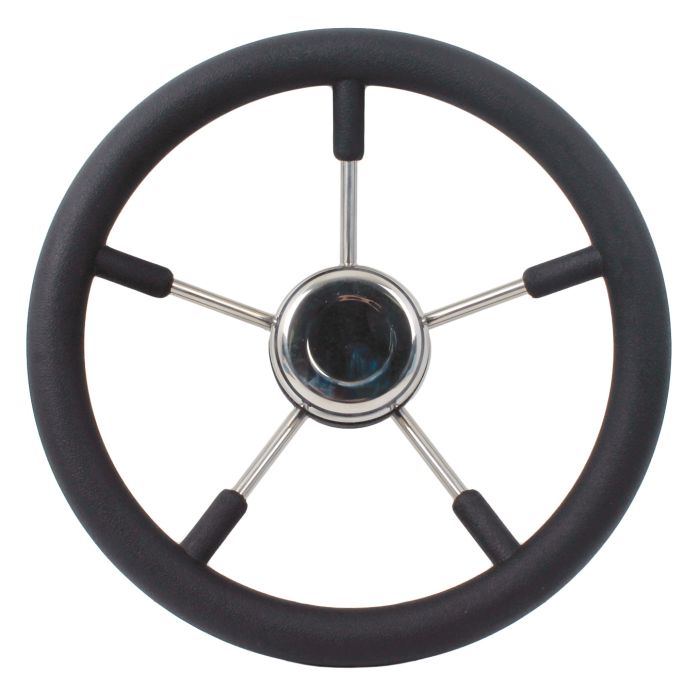 Black 330 millimetre diameter marine steering wheel
