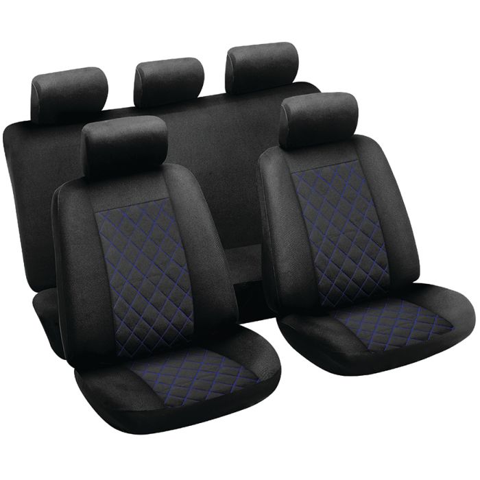 Carco black with blue diamond pattern 9 piece seat cover set
