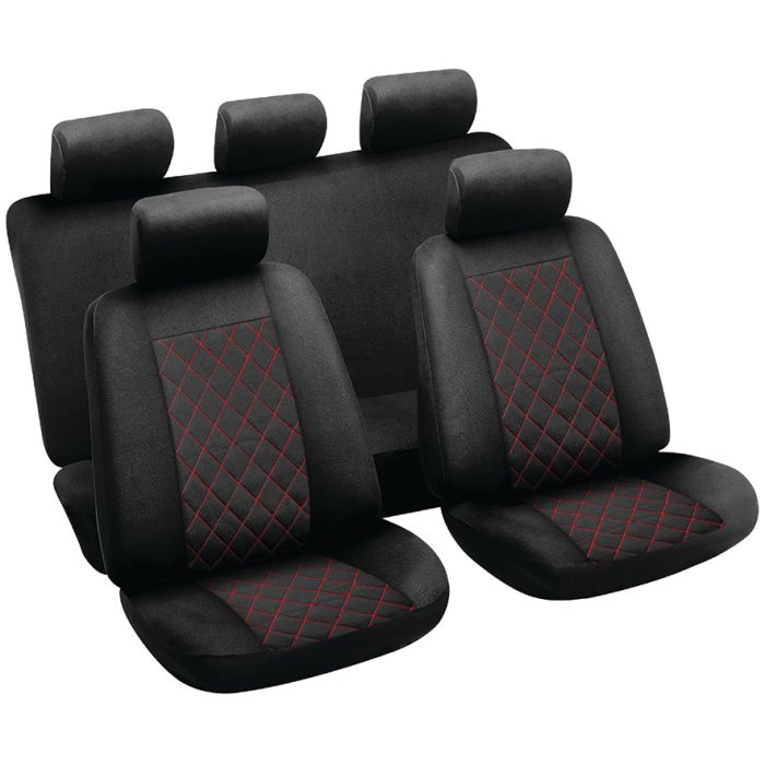 Carco Black with Red Diamond Pattern 9 Piece Seat Cover Set