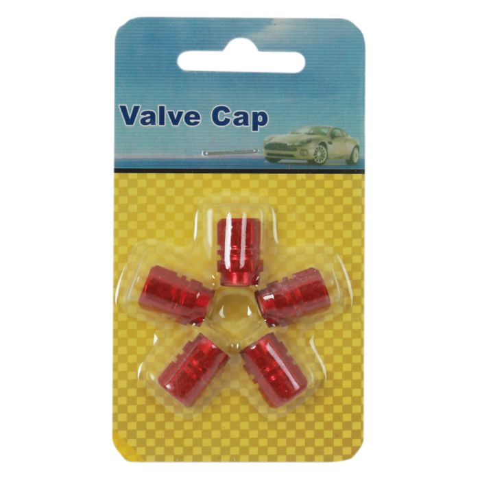 Red Set of 5 Solid Aluminium Tyre Valve Caps