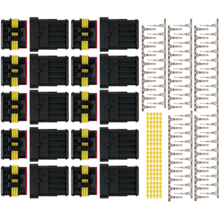 \nVersatile Applications: This connector set is suitable for a wide range of electrical applications, including automotive wiring, marine electronics, and outdoor electrical systems. Whether you're working on a car, truck, boat, or other outdoor equipment, this set ensures weatherproof electrical terminations in challenging conditions.
