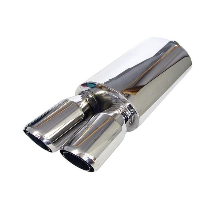 \nTransform your driving experience with the Twin Muffler - 60mm Inlet. Perfect for performance enthusiasts and those seeking to enhance their vehicle's aesthetic appeal, this twin muffler promises to deliver exceptional performance, a distinctive sound, and a stylish look. Upgrade your exhaust system today and enjoy the ultimate driving experience.
