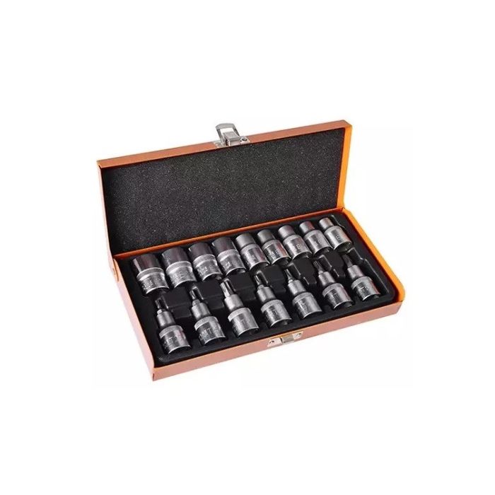 \nVersatile Socket Selection: Includes 9 E-type sockets (E10, E11, E12, E14, E16, E18, E20, E22, E24) and 7 Torx bit sockets (T30, T40, T45, T50, T55, T60, T70), providing comprehensive coverage for a variety of applications and fastener types.