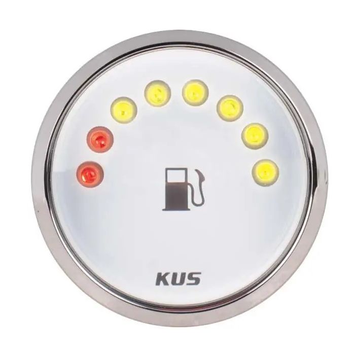 Kus Marine Grade LED Fuel Gauge for Boats - 52mm (White with Silver Bevel)